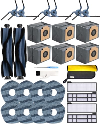 Yivy 29 stycken tillbehörsset för Eufy X10 Pro Omni Robotdammsugare,2 Huvudborste,6 Sidoborstar,4 Hepafilter,6 Dammpåsar,8 Moppdynor etc.