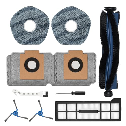 Ersättningstillbehörssats kompatibel med Eufy X10 Pro Omni robotdammsugare med 4 dammpåsar, 1 huvudborste, 1 filter, 2 moppkuddar, 2 sidoborste, 1 rengöringsborste, 1 skruvmejsel (12-pack)