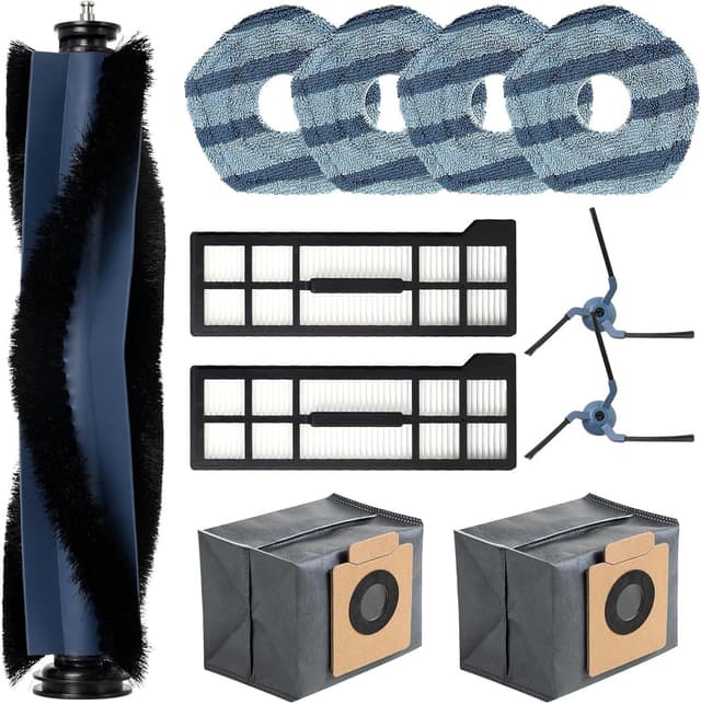 Fixbetter tillbehörssats för eufy X10 Pro Omni robotdammsugare, 1 huvudborste, 2 HEPA-filter, 4 torkdukar, 2 dammpåsar, 2 sidoborstar, 1 rengöringsborste