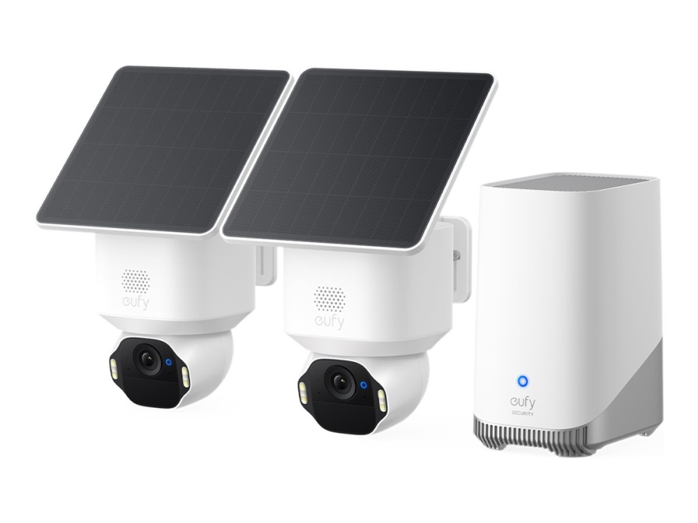 Eufy Solocam E42 - Nätverksövervakningskamera - Panorering / Lutning - Torn - Utomhusbruk - Väderbeständig - Färg (Dag&Natt) - 8 Mp - 3840 X 2160 - 4K - Motoriserad - Ljud - Trådlös - Wi-Fi - Med Homebase S380 And Solar Panel (Paket Om 2)