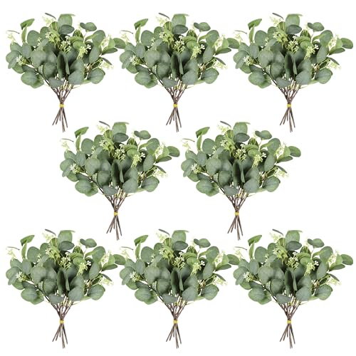 YEJIKJ 30 stycken konstgjorda växter eukalyptusdekoration, 38 cm/15 tum konstgjorda grenar eukalyptusblad torkade eukalyptus konstgjorda växtgrenar för bröllopsdekoration, kontor, sovrum dekoration