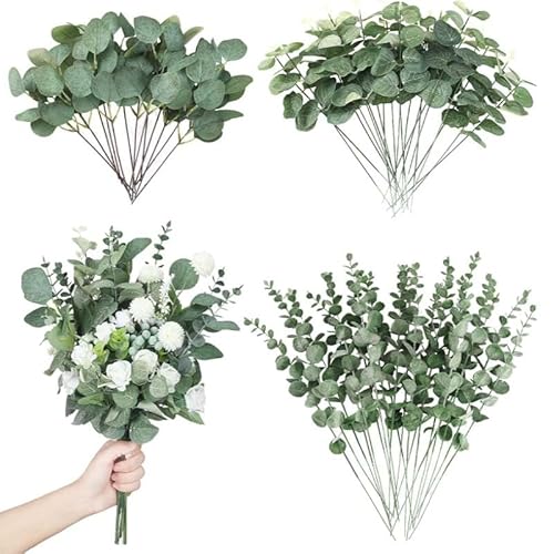 Homcomodar Konstgjorda eukalyptusstjälkar 48 st konstgjorda eukalyptusblad, fuskgrönska, växtgrenar för bröllop, bordsuppsats, blommig bukett heminredning