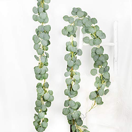 DearHouse 2 st konstgjord eukalyptusgirlang falskt siden eukalyptusblad vinrankor handgjord girlang grönska bröllop bakgrund båge väggdekor, 1,2 m/st