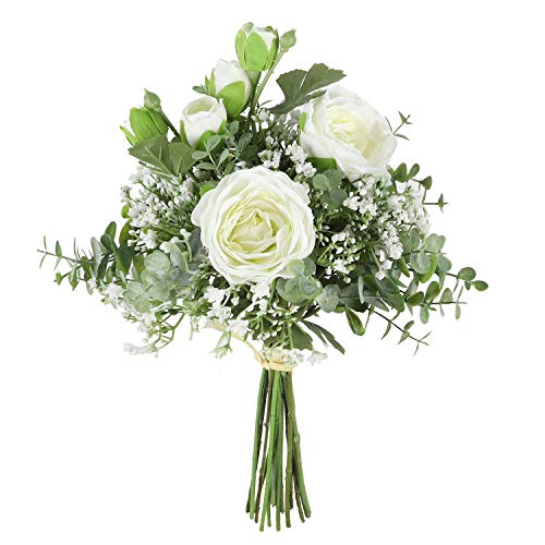 Skyseen konstgjorda blommor eukalyptusblad bebisar andedräkt Gypsophila buketter bröllopsfest heminredning, förpackning med 1 (vit)
