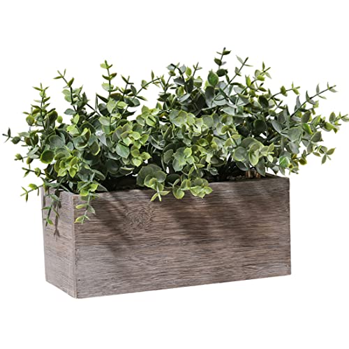 Aisamco 1 styck konstgjorda eukalyptusblad i trälåda, falska eukalyptuskvistar, växter, inlagd konstgjord grön växt i grågrön för bröllopsfest, blomdekoration