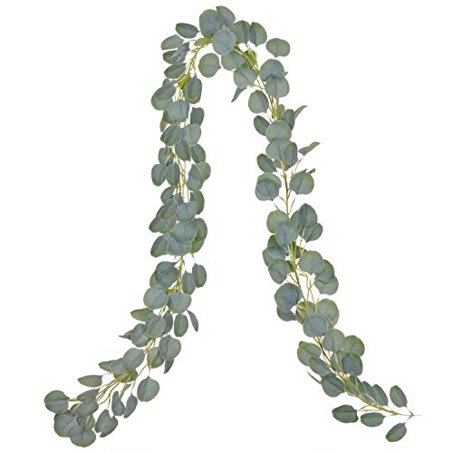 Konstgjord eukalyptus ljusslinga, konstgjord eukalyptusgirlang 1,8 m, eukalyptusblad, girlang vinrankor, konstgjord murgröna, falsk för bröllop, trädgård, hängande väggdekoration