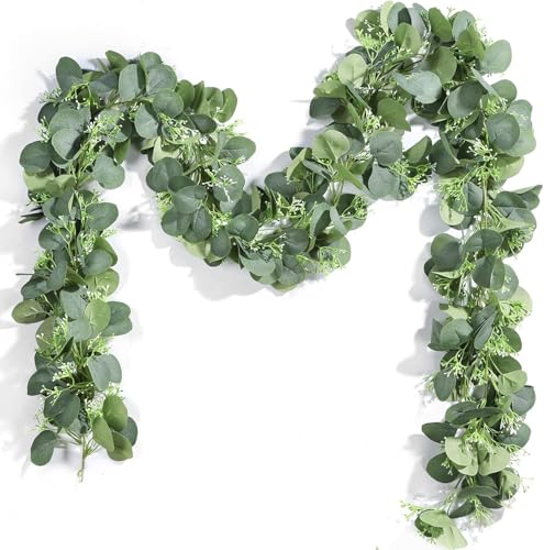 LATTCURE Eukalyptus Konstgjord 2 m eukalyptus girlang konstgjord växt, eukalyptusblad dekoration girlang bröllop krans hängande vinrankor semester bröllop heminredning tillbehör eller som väggdekoration