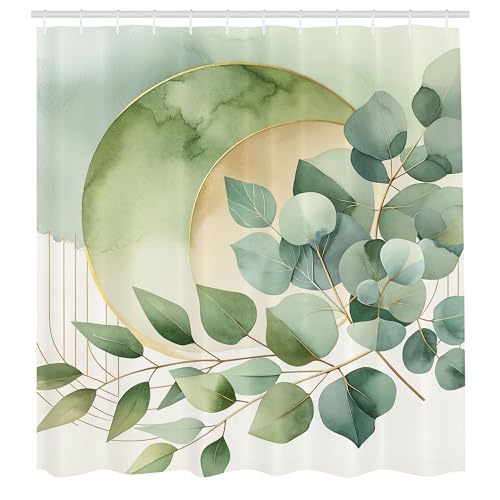 Bonhause Grön växt eukalyptusblad duschdraperi 180 x 200 cm duschdraperi vattentät polyester tyg tvättbar badrumsgardin med 12 badkrokar