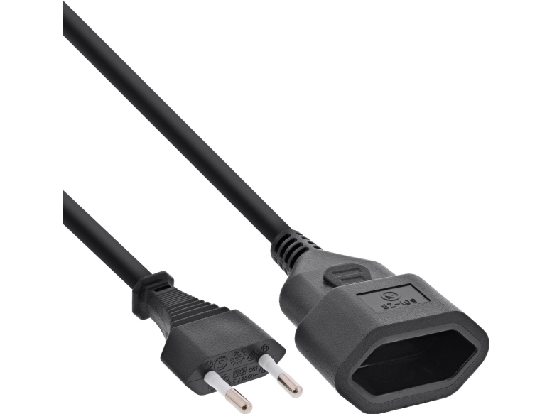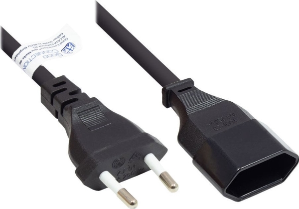 Good Connections® Euro-nätkabelförlängning – 2 m – Euro 8 kontakt/C8 (rak) till Euro 8-uttag/C7 (rak) – svart