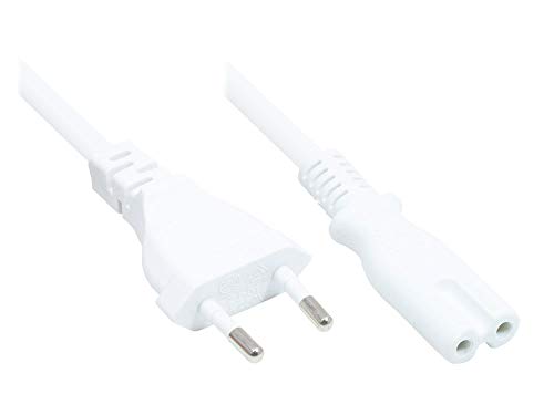 Good Connections EURO-nätkabel – 1 m – Euro-kontakt typ C (rak) till C7/Euro 8-uttag (rak) – koppledare – 0,75 mm² – strömkabel för TV, konsol, radio, nätdel, rakapparat och mer. – vit