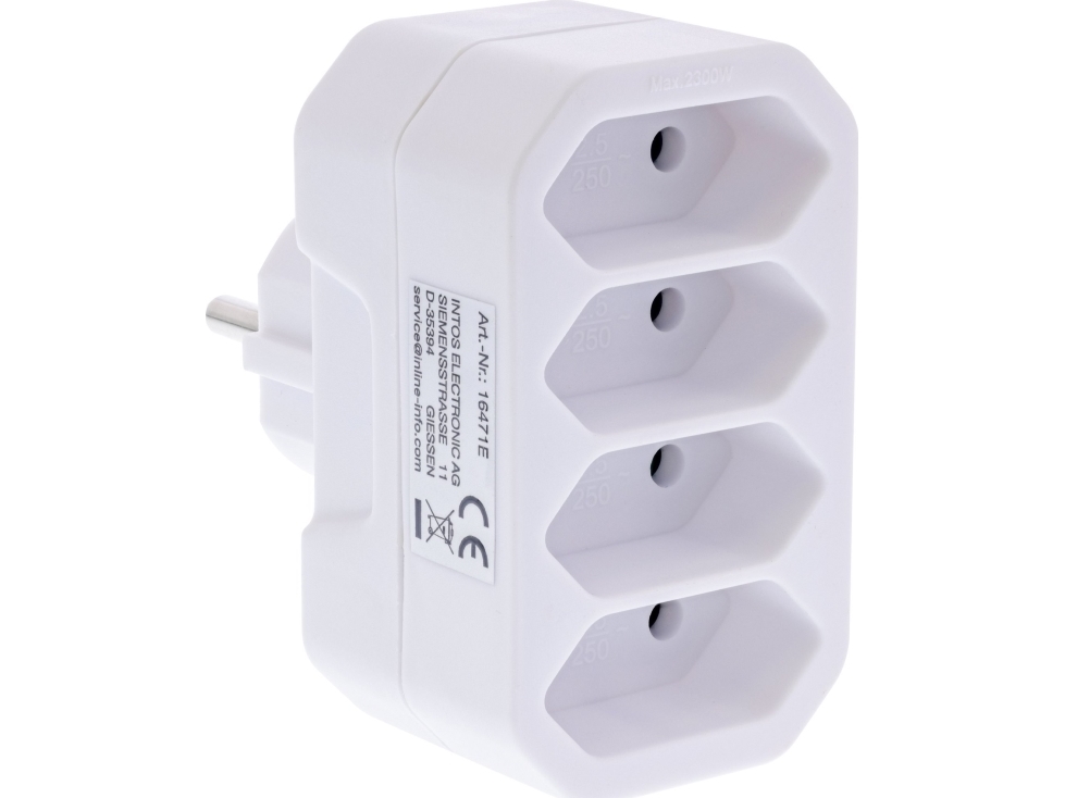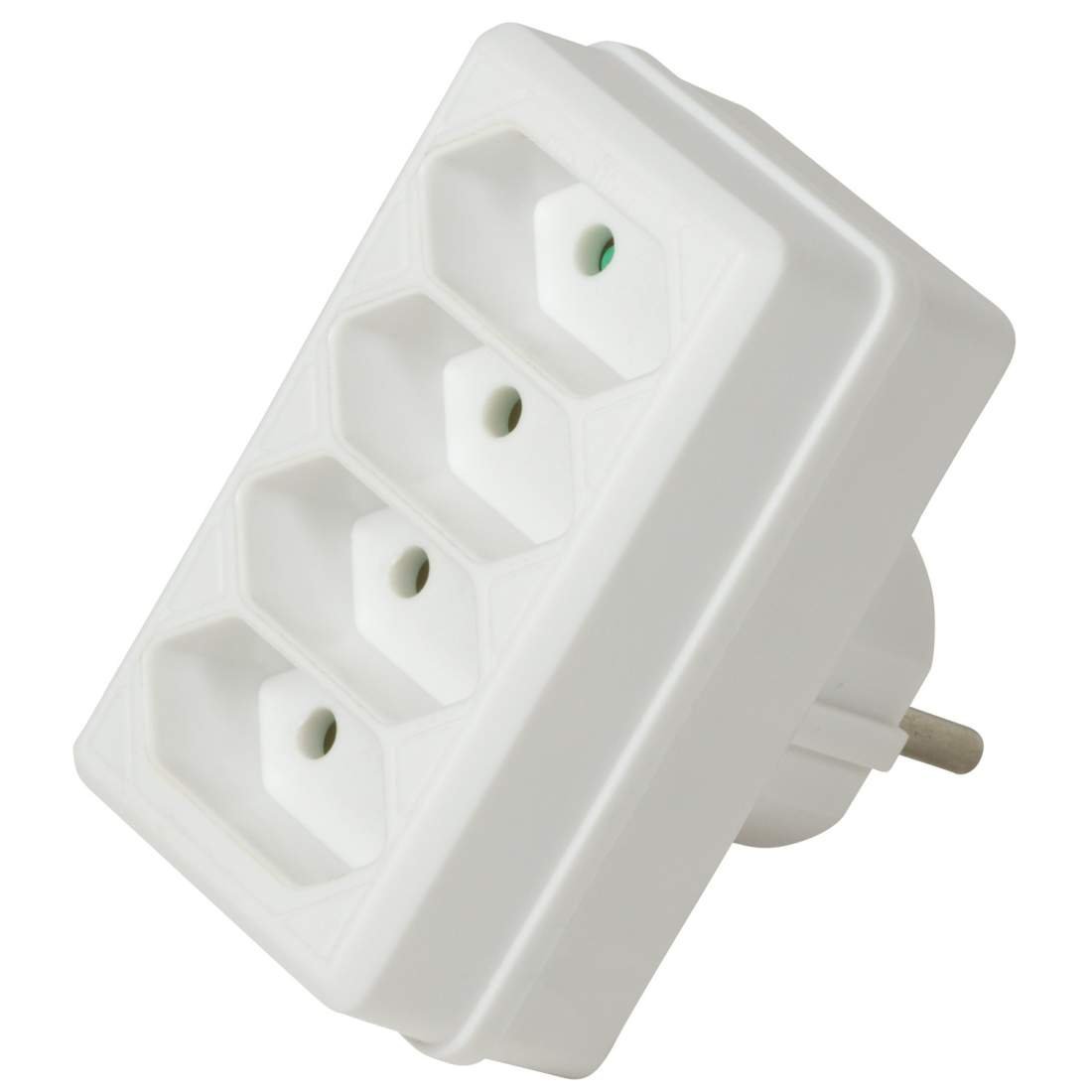 Inline Uttagsadapter Jordad Kontaktplugg Till 4X Euro-Uttag Vit (16471E)