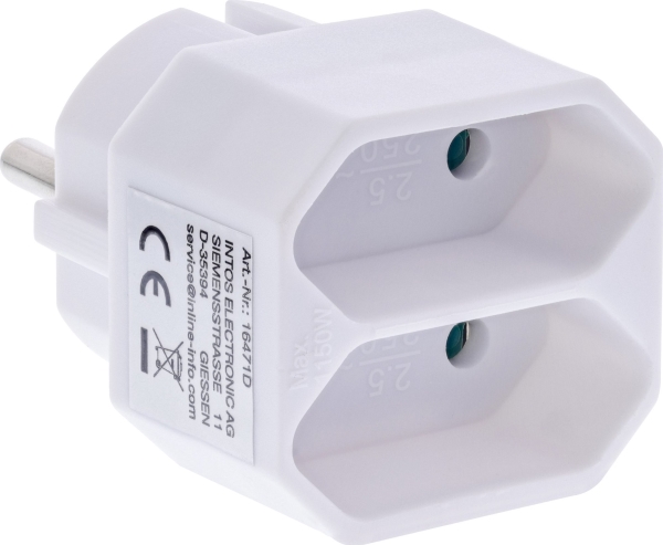 Inline Stickproppsadapter Jordad Kontakt Till 2X Euro-Uttag Vit (16471D)