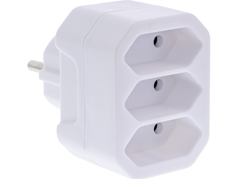 Inline Stickproppsadapter Jordad Kontakt Till 3X Euro-Uttag Vit (16471A)