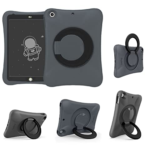 NLR Kids EVA-fodral för iPad | Stabil stativ med flera riktningar | Kompatibel med 10,2-tums iPad 2020/2019 (8:e/7:e generationen) (Grå+Svart)