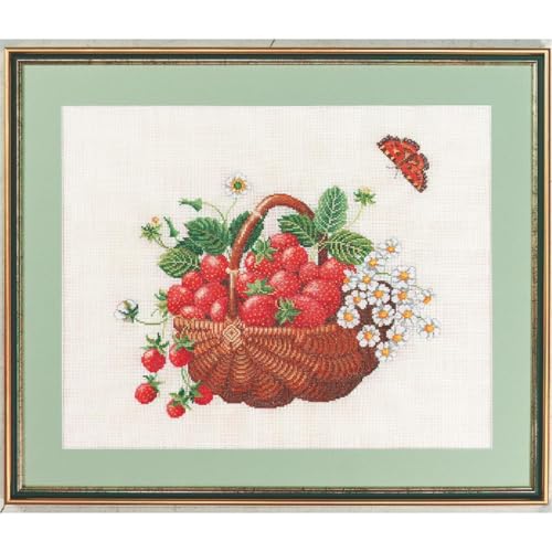 Eva Rosenstativ korsstygn set korg med jordgubbar räkningsmönster