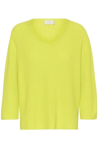 Kaffe Kvinnors tröja V-hals beskurna ärmar avslappnad passform chunky stickad höftlängd dam, Evening Primrose, XL