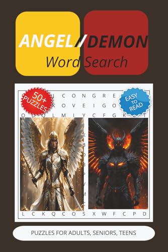 Angel & Demon Word Search Puzzle Book: Word Searches with Easy to Read Print about Angel & Demon, Good vs Evil, Light vs Darkness and More | 6x9 ... Gift for Vacations, Holidays and Free Times