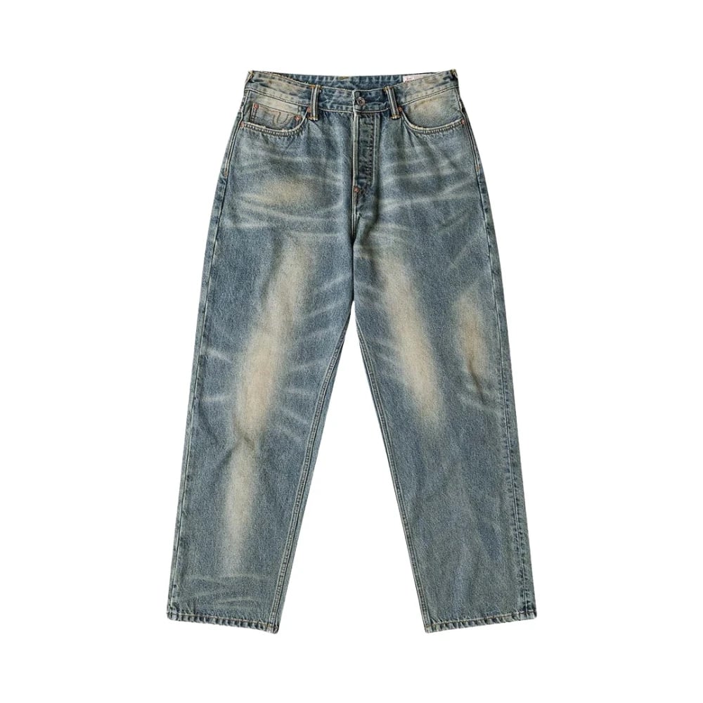 Evisu, Jeans , Herr, M, Bomull, Tvättade jeans med patchwork och måstryck i lös passform