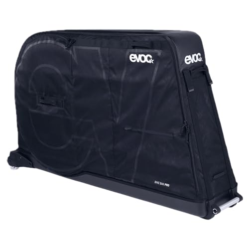 EVOC BIKE BAG PRO cykelväska (hopfällbar cykeltransportväska för racer-, gravel-, XC-, FR-, enduro-, DH- och ≤29"-cyklar, CLIP-ON WHEEL 3.0, max. hjulbas 130 cm, BIKE STAND PRO), svart