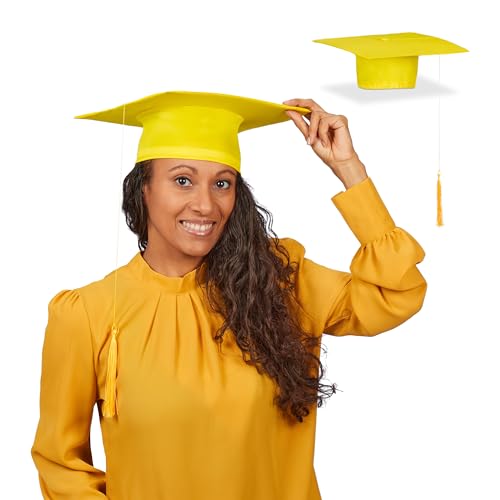 Relaxdays Doktorhatt, set om 2, examenhatt med tofs, för examen, ungdom och masterexamen, examen-hatt, gul