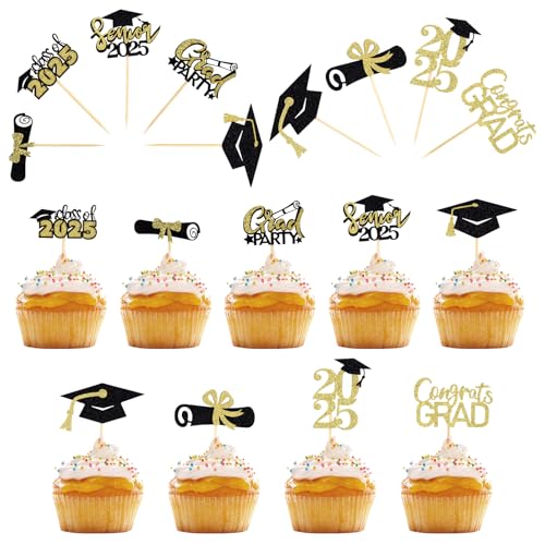 22 stycken examen cupcake-toppar, 2025 glitter finish tårtdekoration, möhippor hatt examen kaka dekoration, examen dekoration tårta för 2025 examen, tårta, festtillbehör
