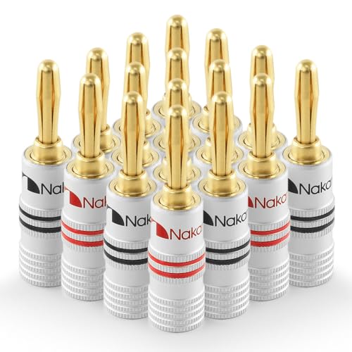 Nakamichi FanLock Excel Series 24K guldpläterad bananplugg Högtalarkontakter 10 AWG - 18 AWG Mått 4 mm för Högtalarkabel hemmabio förstärkare och ljudsystem snabbanslutning, 16 st (8-par)