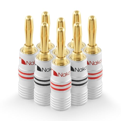 Nakamichi FanLock Excel Series 24K guldpläterad bananplugg Högtalarkontakter 10 AWG - 18 AWG Mått 4 mm för Högtalarkabel hemmabio förstärkare och ljudsystem snabbanslutning, 8 st (4-par)
