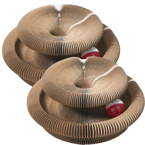 2Pcs Kitty Kurlz Cat Toys | Magic Accordion Scratching Board | Organ Cat Scratcher Board with Ball | Foldable Recyclable Interactive Cat Toy Ball Track for Grinding Claw | Mental and Physical Exercise