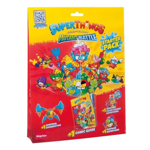 SUPERTHINGS Mutant Battle-serien – Starter Pack, tidskrift inklusive en serietidningsguide med historien om serien + 1 Exoskeleton överraskning + 2 SuperThings Surprise (1 färgändring)