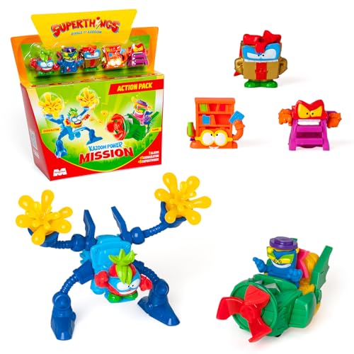 SUPERTHINGS KAZOOM Power Mission – Action Pack, innehåller 5 SuperThings (inklusive 1 gyllene superledare), 1 x Exoskeleton, 1 slider. 4-pack