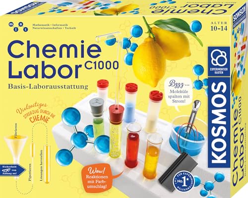 Kosmos 645540 C1000 kemisk laboratorieutrustning med skyddsglasögon och 7 kemikalier, kemi för barn från 10 år, grundundervisning, experimentlåda till mint, 29 x 36 x 8 cm