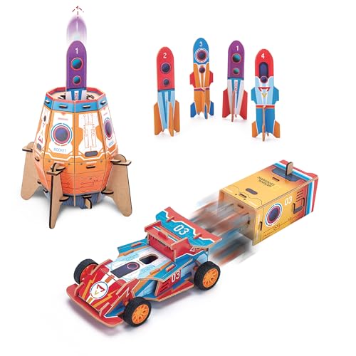EXPLORA Starter och bil raket 2-i-1-77 delar-3D-modell STEAM-540080-föremålsvetenskap-DIY- inget lim eller sax-konstruktion-nationell geografisk licens-6 år, 540080