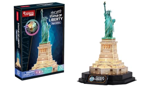 EXPLORA Frihetsgudinnan - Pussel 3D-540024-31 Stycken-Monument-Nivå 2-Inget Lim eller Sax-Pedagogisk-USA-Byggspel - Present-Modell-5 År, 540024