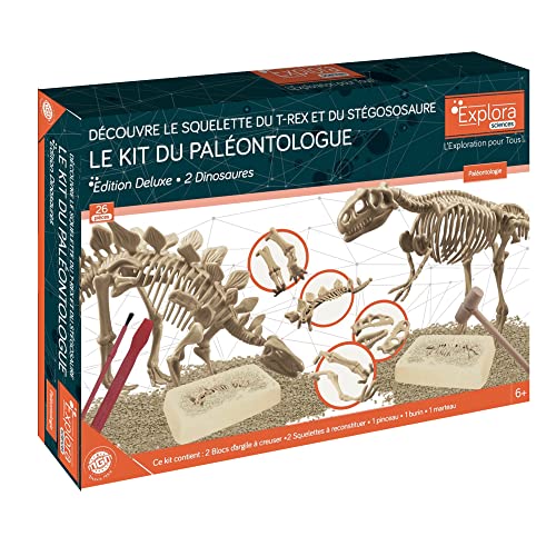 EXPLORA - 2 skelett av dinosaurier - paleontologsats - 039402 - grävgips - upptäcktsats - barnlek - vetenskapsman - äventyr - lekfull - fossil - från 6 år