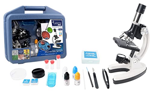 EXPLORA - Mikroskop med tillbehör och resväska - 546035–25 cm - observationssats - från 8 år - 2 x AA-batterier 1,5 V - ingår inte