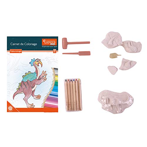 EXPLORA - Dinosaurier och målarbok - Paleontologist Kit - 039398 - Grävgips - Discovery Kit - Barnspel - Vetenskapsman - Pedagogisk - Äventyr - Leksak - Från 5 år