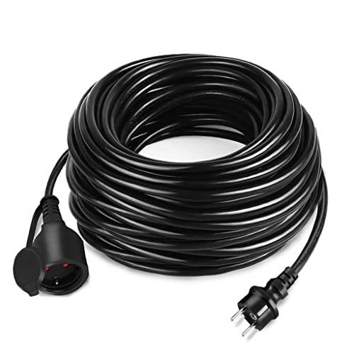 LZQ 30 m förlängningskabel eurokontakt, strömkabel förlängning med skyddskåpa, strömförlängningsslang 230 V IP44 Extension Cord utomhus – svart