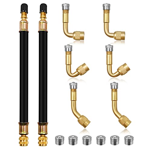 Förlängning Däck Valve, 2 stycken 180 mm Tube Förlängningsventil Gummi, 45 ° 90 ° 135 ° Valve Extension Adapter med 6 Pluggar Valve för Bil, Motorcykel,Cykel, Scooter