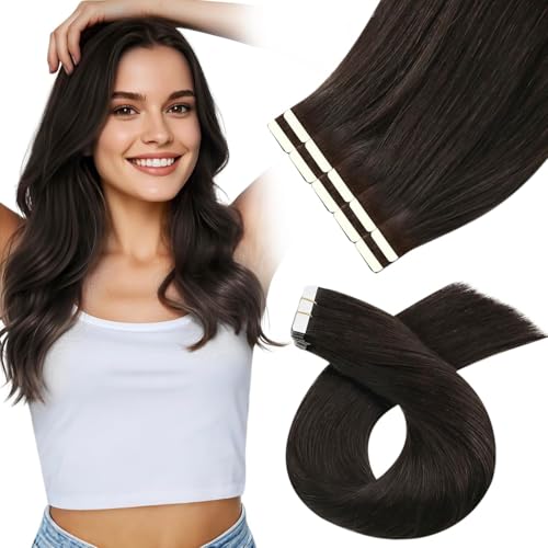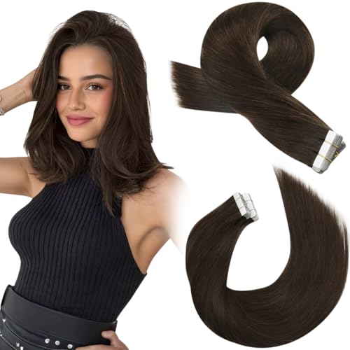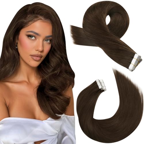 YoungSee Tape Extensions äkta hår brunt 50 cm äkta hår förlängningstejp mörkbrun tejp i hårförlängning mänskligt hår extensions tejp tjock för kvinnor 50 g #2