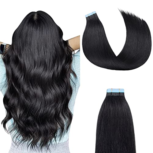 SUYYA Tape Extensions äkta hår, osynlig tejp i förlängningar, äkta hår, sidenlen rak Remy Tape hårförlängningar äkta människohår 12 tum 30 cm 20 stycken 40 g #1B naturligt svart