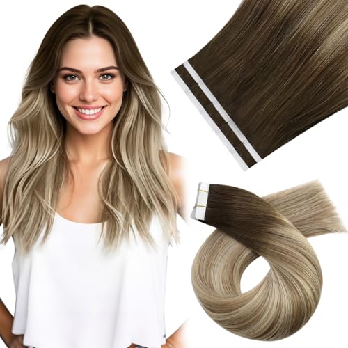 Moresoo Tape Extensions äkta hår balayage blond brunt hår tejp äkta hår förlängningar hårförlängning äkta hår tejp långt hår 55 cm #8/22/8 25 g 10 st