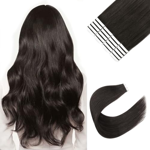 Moresoo Tape Extensions äkta hår svart Remy osynlig tejp i förlängningar äkta hår slät 45 cm hårförlängningstejp i äkta hår, hud bredd 25 g, 10 st
