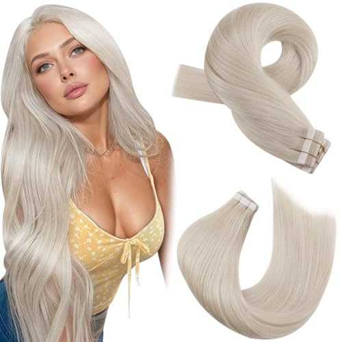Moresoo Tape Extensions äkta hår vit blonda tejp i förlängningar, äkta hår, slätt äkta hår, tejpförlängningar, 20 stycken 50 g #60 A