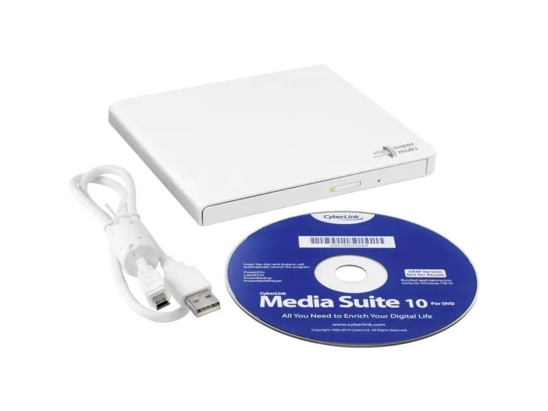 Hitachi-LG GP57 Extern bärbar Super Multi DVD-brännare, Ultra Slim, USB 2.0, DVD+/-RW, CD-RW, DVD-ROM/RAM kompatibel, TV-port, Windows 10 och Mac OS kompatibel, vit