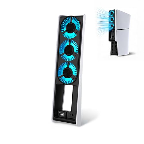 Akuma Cyber W02 Bakgrundsbelyst fläkt kompatibel med PS5 Slim med 3 fläktar och en extern USB 3.0-port, vit