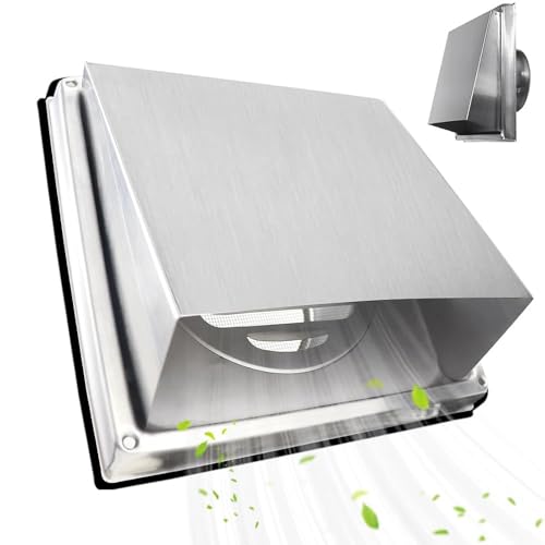 LbsAMP Fyrkantigt luftventilationsskydd 100 mm ventilationsgaller skydd 304 rostfritt stål fläkt ventilationsskydd för vägg utomhus anti-insekt kök kanalsystem badrum extern ventilationsskydd silver