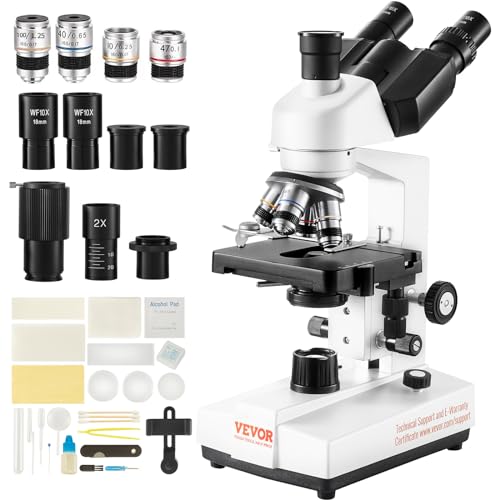 VEVOR Sammansatt treokulärt mikroskop 40X-5000X biologiskt mikroskop grov och fin precisionsfokus med 2-stegs platina gränssnitt för dator eller extern skärm utbildning forskning
