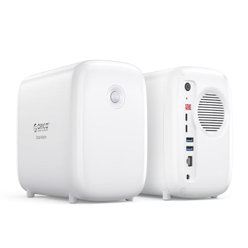 ORICO DM102 extern hårddisk, inbyggd 1 TB M.2 Nvme SSD och 4 TB 3,5 tums SATA HDD, 2 x USB 3.0, 1 x USB-C, Ethernet, 5 TB