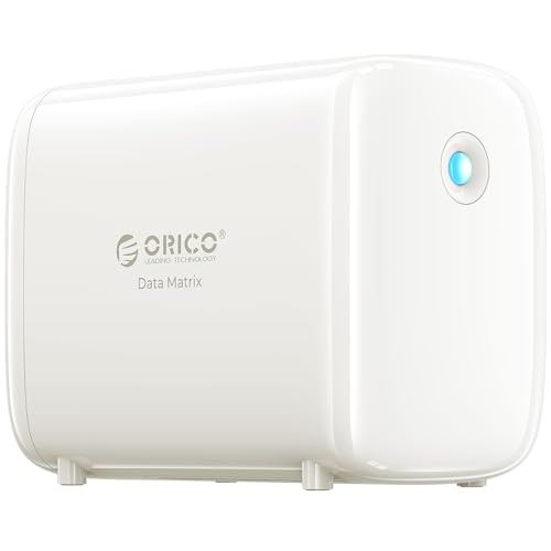 ORICO DM103 2 Bay Raid extern hårddisk, inbyggd 1 TB M.2 Nvme SSD och 8 TB 3,5 tums SATA HDD, 2 x USB 3.0, 1 x USB-C, Ethernet, 9 TB