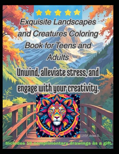 Exquisite Landscapes and Creatures Coloring Book for Teens and Adults: “55 pages plus 10 extra pages as a gift” Unwind, alleviate stress, and engage with your creativity.